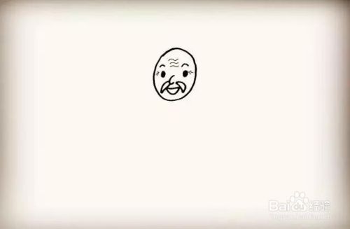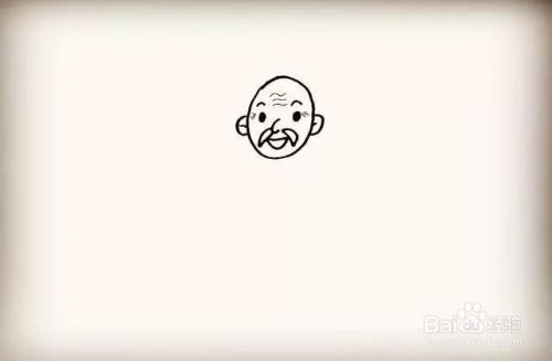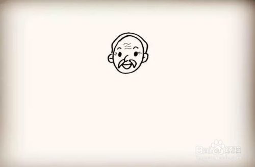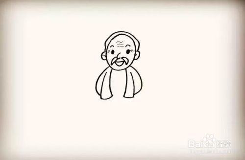 用线条画出爷爷脸上的皱纹。在头部两侧画出爷爷的耳朵。