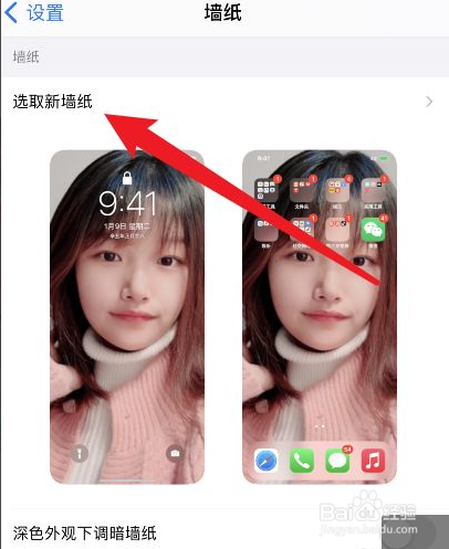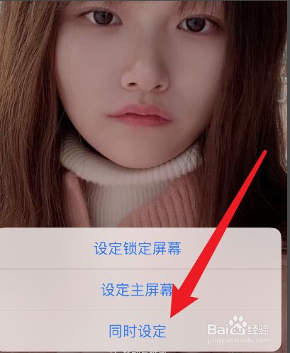 打开手机设置,点击选取新墙纸,点击所有照片,选取主题照片,点击右下角设定,点击同时设定。