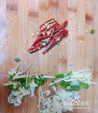 准备葱姜蒜辣椒,切好