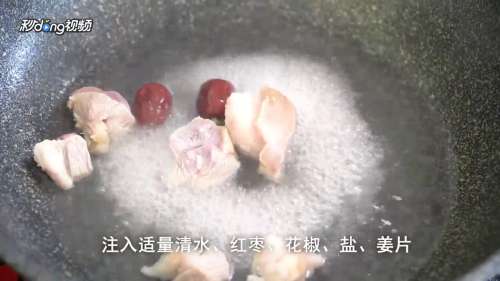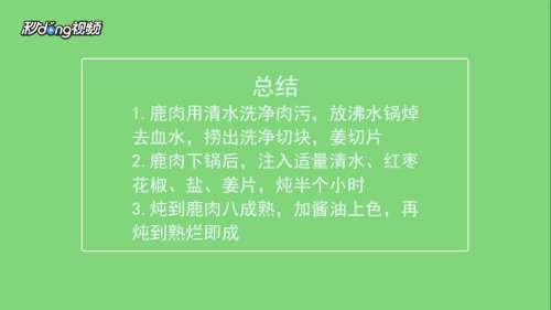 3注入适量清水、料酒、红枣、花椒、盐、姜片,炖到鹿肉八成熟,加酱油上色,再炖到熟烂即成。
