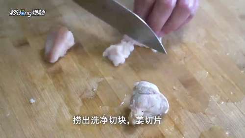 2鹿肉用清水洗净肉污,放沸水锅焯去血水,捞出洗净切块,姜切片,将鹿肉下锅。