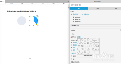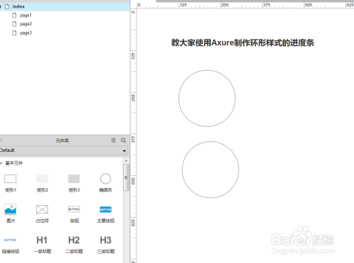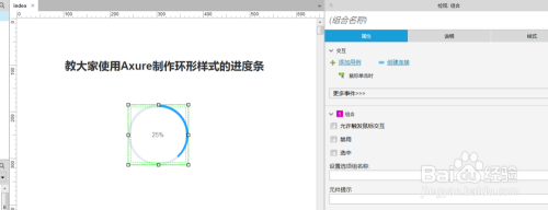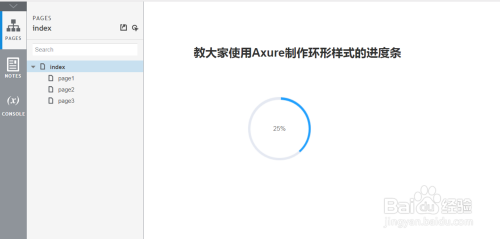 前面的经验小编向大家介绍了线形进度条的制作方法,今天小编教大家使用Axure制作环形样式的进度条,详细步骤如下。