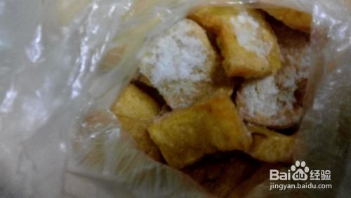 这是提前做好的豆腐泡。放在冰箱里冻上的,随时可以用。