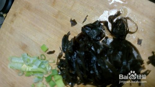 把海带切细丝,葱花切好