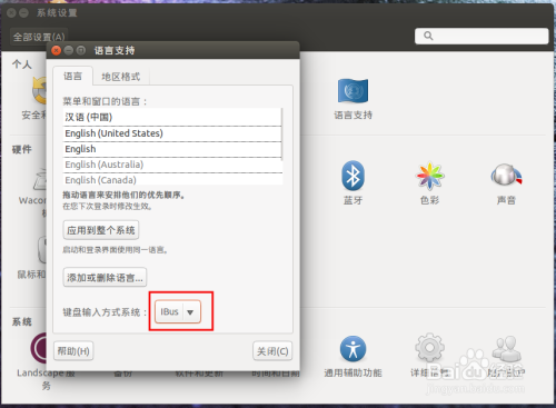 点击 语言支持 键盘输入方式系统 选择IBus