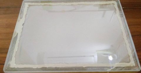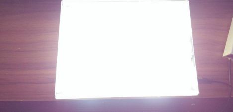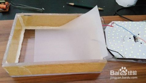 由于亚克力板是全透明的,LED发光过于集中,所以增加一层散光的透膜效果比较好。于是在亚克力板上面贴一层硫酸纸来增加散光效果,增加一层硫酸纸贴在亚克力上面呢板的下方: