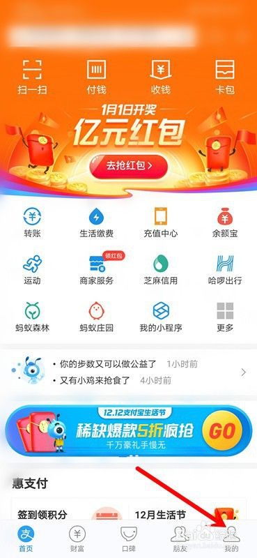 1、打开支付宝,点击我的。