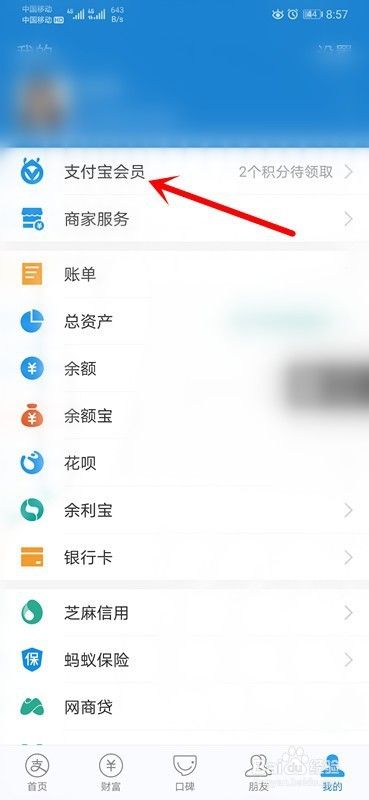 3、进入会员之后,查看支付宝积分。