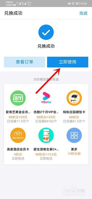 最后,兑换完之后,点击【立即使用】即可。