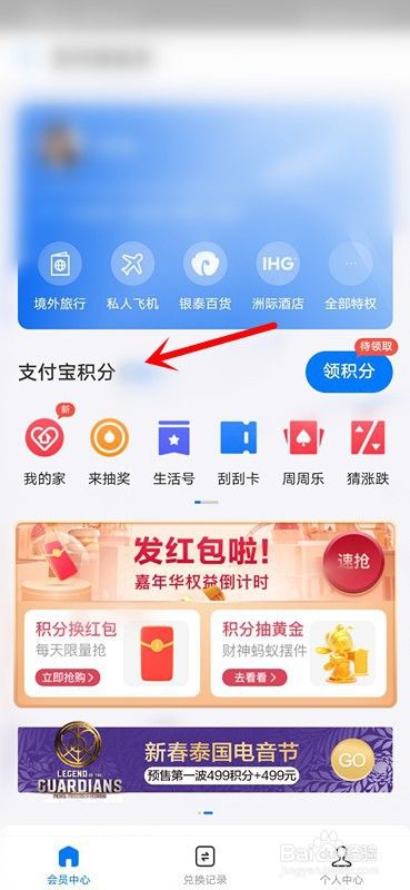 进入会员之后,查看当前【支付宝积分】。