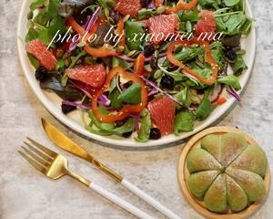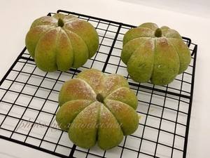 绿茶口味,烤箱预热到180度,降到160度,烤10分钟。 绿茶比南瓜口味结实一些,形状是圆南瓜。