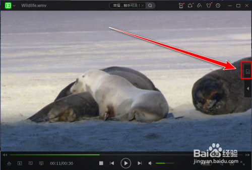 在爱奇艺万能联播播放到视频的重点时,将鼠标移到播放器窗口右侧中间部位。