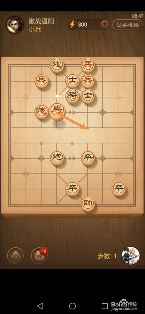 第十五步馬移动到下图中箭头标注的位置。