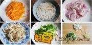 2做法1.胡萝卜洗净去皮切丝. 2.茶干切丝用开水泡一下(去除豆味) 3.洋葱,芹菜洗净切丝,(芹菜叶别去掉,好东西) 4.秀珍菇洗净,用手撕成丝. 5.葱,姜,蒜洗净切碎.