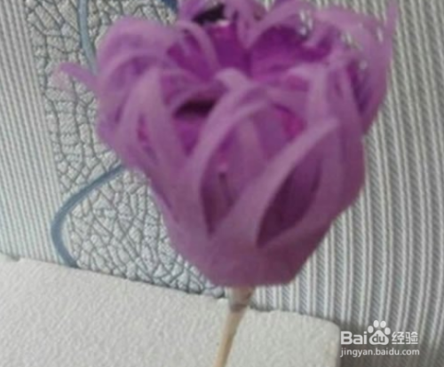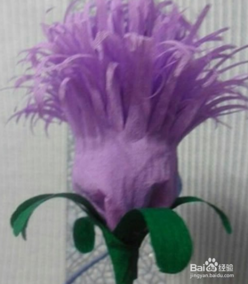 准备绿色皱纹纸,剪出如图形状的花萼。