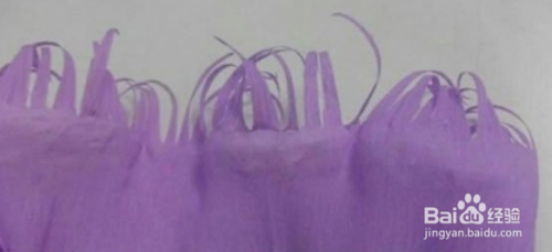 准备好皱纹纸,折叠后从一边剪出一排细条。