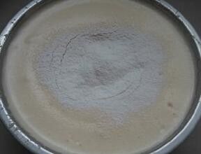 将鸡蛋打散后把蛋盆移至装有温水的大盆中继续打发