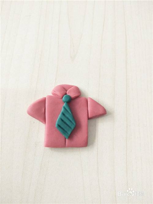 最后,用小刀在菱形上面刻几条斜线,当作领带的条纹,一件彩泥衬衣就做好了,送给父亲,父亲会很开心。