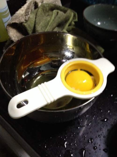 将蛋清和蛋黄分离(我们只要蛋清,蛋黄不要浪费了,可以煎个蛋,做个三明治)