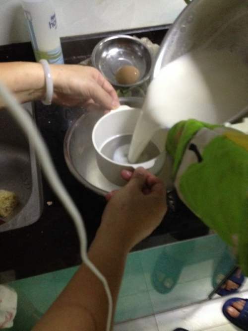 5倒入碗中,静置待凉(要等到上面有一层皮)