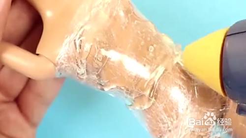 花布用剪刀剪一剪,再用绳子系上腰带,芭比的新裙子就有了。