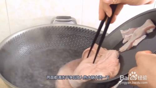 两面都清洗干净后放入热水锅中烫一下,烫好后刮掉白色的膜就可以了。