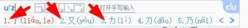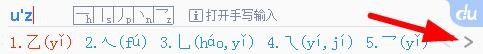 在输入框中输入uz字母就会出现偏旁部首