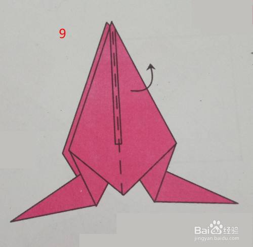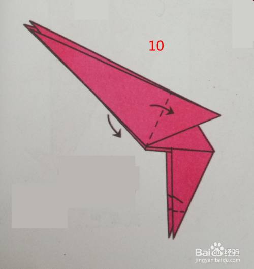 第十步:沿虚线朝箭头方向折叠。如下图所示
