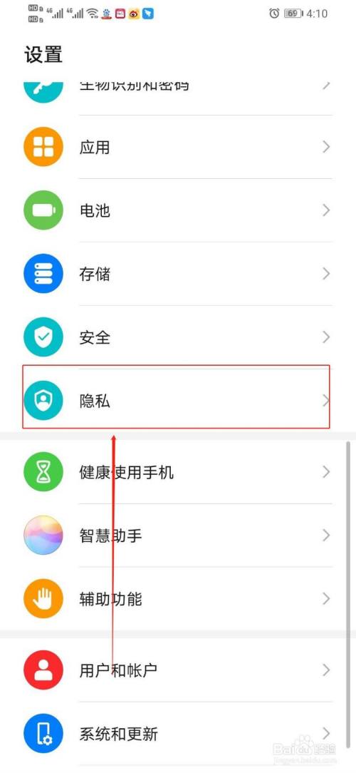 在“设置”中,向上滑手机,找到“隐私”,如图