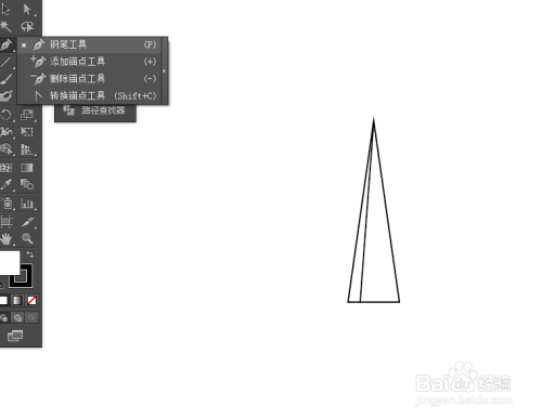 接着把矩形删掉,再选择钢笔工具,在三角形勾出一条路径,如图所示