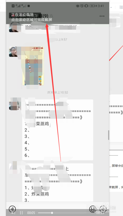 截取到自己需要的聊天记录时,点击屏幕上部,结束截屏,完成后可以预览编辑结果图片