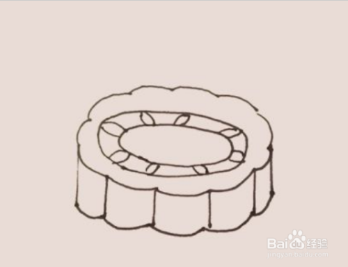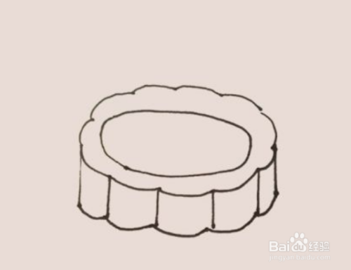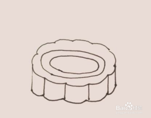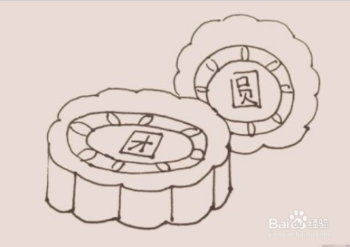 在后面,用同样的方法画上第二个月饼,只是把椭圆替换成圆