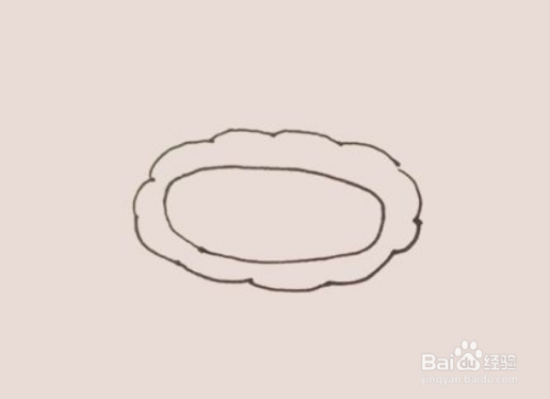 用波浪线绕着椭圆形画一圈。