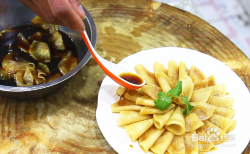 腌好以后取出来,均匀摆放在盘子里面,放上香菜、浇上腌料,过年的时候当爽口凉菜也非常不错。