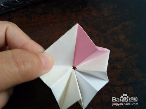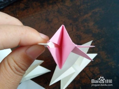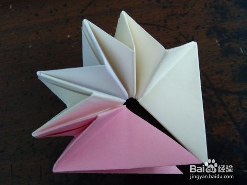 我们把最后的两个角也分别插好,同样是把中间撑开,如图一。图二是撑开后的样子。