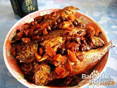 将小黄鱼盛出放入盘中备用、锅中留少许油倒入事先准备好的蒜、姜、豆鼓爆香、