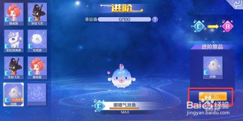 然后选择要进阶的宠物,比如选择气泡鱼,点进阶