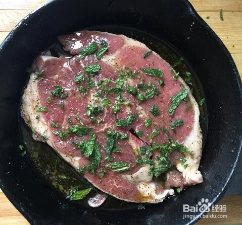 羊扒两面都抹上黑胡椒粉,盐,橄榄油,撒薄荷叶末,用手按摩入味,肥称腌制半小时。