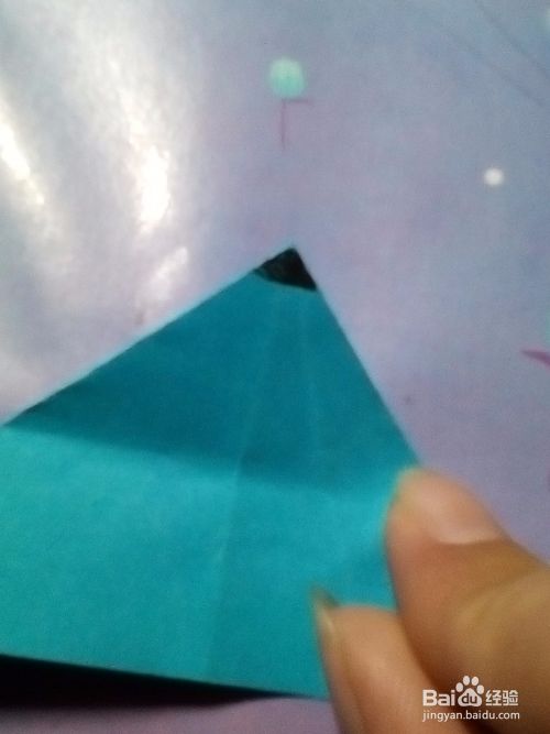 翻到背面,将上方的一角向下面折,要多出来一点(黑色的部分就是要多出来的)
