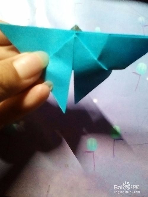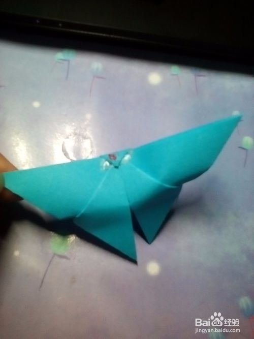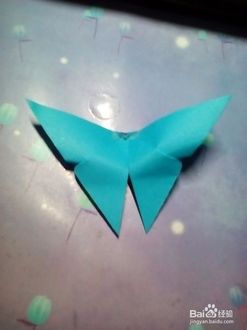 将多出的一部分粘在正面的边沿处,调整一下,蝴蝶就折好了