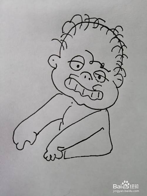第五步,接着继续画出调皮的小男孩的两只手臂。