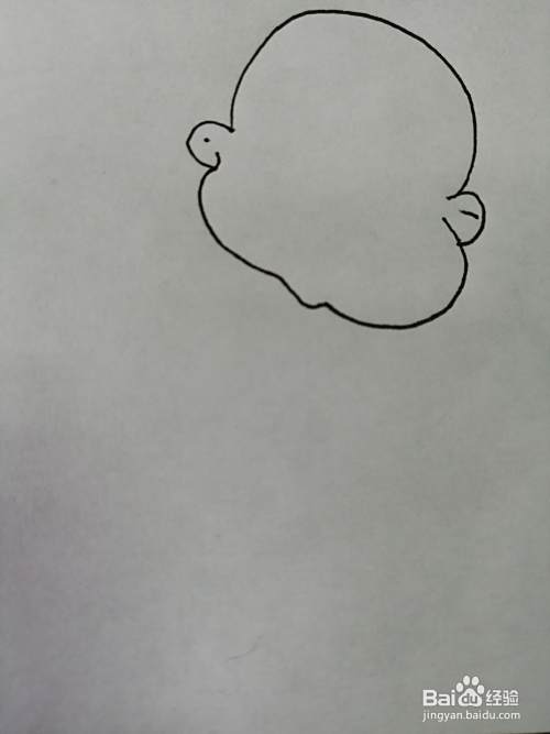 第三步,接着在小男孩的眼睛下面画出小男孩的可爱的嘴巴。