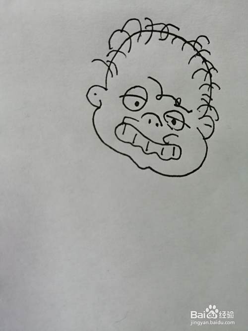 第四步,接着把调皮的小男孩的头顶的头发画出来。