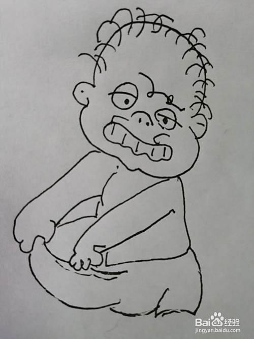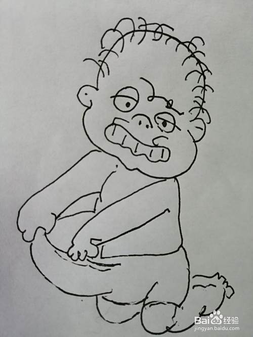 第六步,把调皮的小男孩的身体部分和裤子部分画出来。