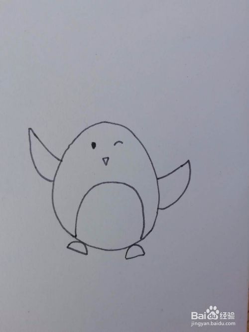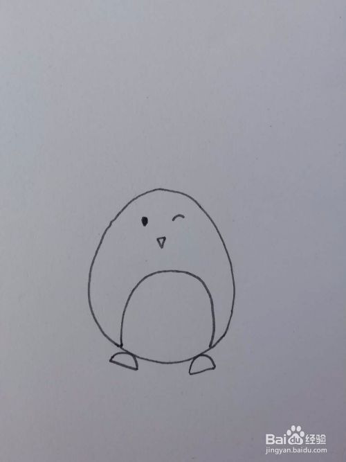 在身体上画一个半圆的弧线做小鸡的肚子,然后在上方画出眼睛和嘴巴
