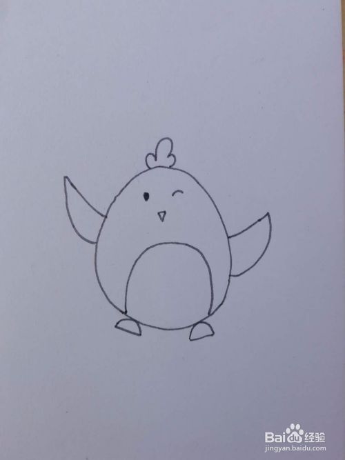 在身体的两边画出翅膀,在头顶上画一个小鸡冠