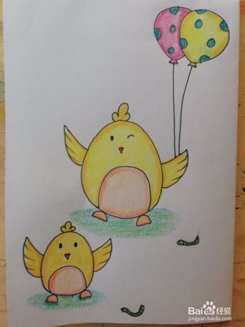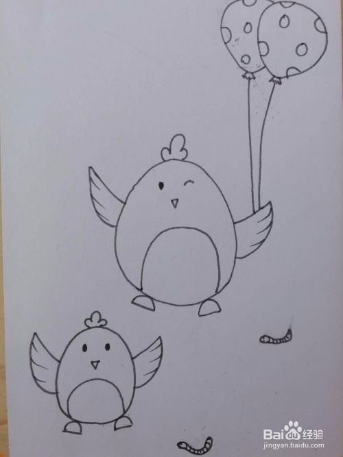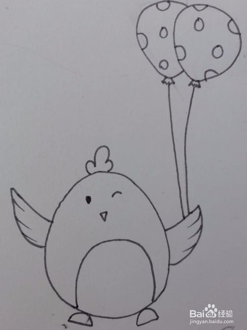 把小鸡翅膀上的纹理画一下,还拿着两个小气球