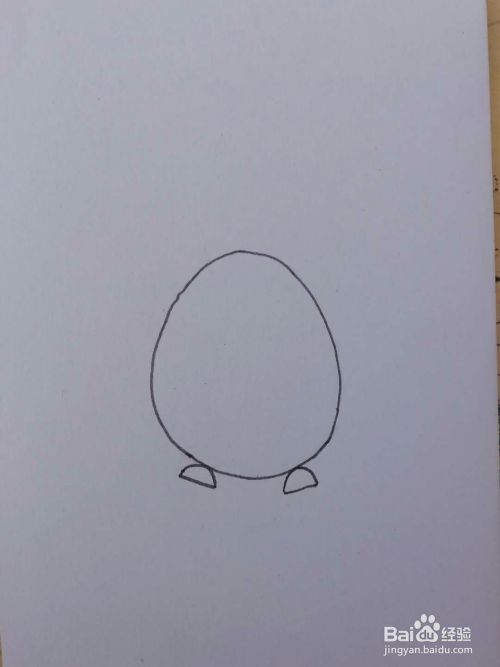 画一个椭圆的身体,下边画两个小半圆做小鸡脚