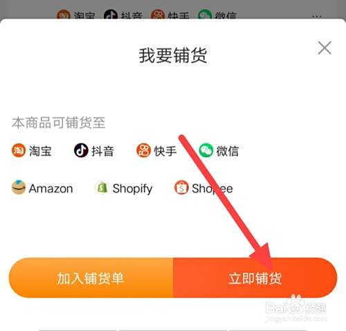 找到您要铺货的产品,点击右上方的代发,等待页面跳转。