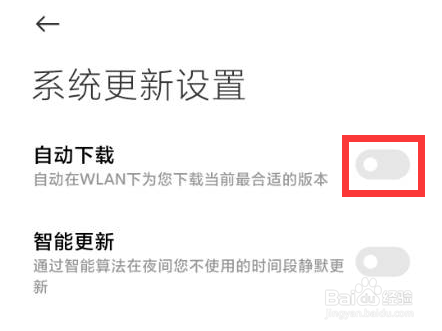 关闭自动下载开关,自动更新系统就关闭了